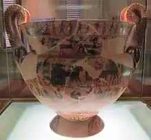 - Para un estudio minucioso de esta copa encontrada en Vulci y datada en 550-540 a. C., véase[17]
