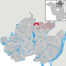 Se encuentra junto a la frontera con el estado de Mecklemburgo-Pomerania Occidental.