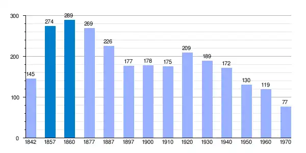 | Gráfica de evolución demográfica de Güel[3] entre 1842 y 1970 |