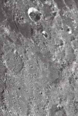 Por convención estos elementos son identificados en los mapas lunares poniendo la letra en el lado del punto medio del cráter que está más cerca de G. Bond.