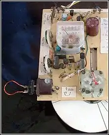 - un microamperímetro de gran sensibilidad, que permite apreciar la corriente absorbida al oscilador por el entorno circundante