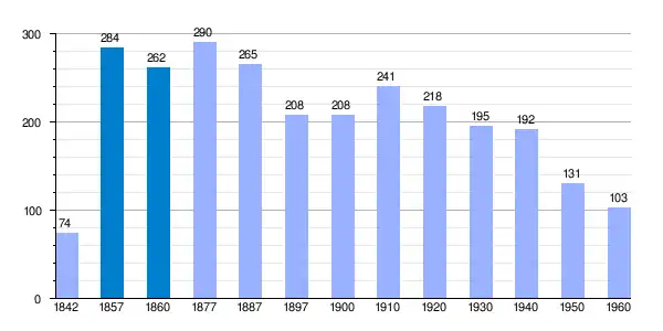 Población de derecho según los censos de población del INE. Población de hecho según los censos de población del INE.Entre el Censo de 1857 y el anterior, crece el término del municipio porque incorpora a 225136 (Labazuy). |