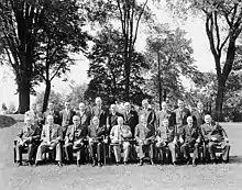 El Gobierno de Canadá, formalmente denominado Gobierno de Su Majestad,[1][2] se define en la Constitución como el Rey que actúa aconsejado por su Consejo Privado;[3][4] lo que técnicamente se conoce como el Rey en Consejo,[5] o a veces el Gobernador en Consejo, refiriéndose al gobernador general como sustituto del Rey.[6] Sin embargo, el Consejo Privado —compuesto en su mayoría por antiguos miembros del parlamento, presidentes y expresidentes de la Corte Suprema de Canadá y otros estadistas de edad avanzada— rara vez se reúne en pleno; como las estipulaciones de un gobierno responsable exigen que quienes asesoran directamente al monarca y al gobernador general sobre cómo ejercer la Prerrogativa Real rindan cuentas ante la Cámara de los Comunes elegida de Canadá, el funcionamiento cotidiano del gobierno sólo está guiado por un subgrupo del Consejo Privado formado por personas que ocupan escaños en el parlamento.[4] Este cuerpo de ministros de la Corona es el Gabinete, que se denomina con la frase Rey en Consejo (King-in-Council en inglés).