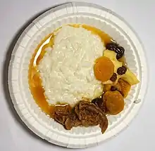 - Arroz con leche, Arroz hervido en leche con especias dulces y azúcar.