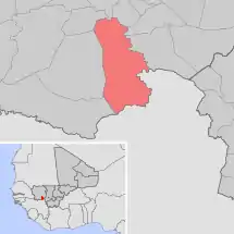 Se encuentra ubicada al oeste del país y al sureste de la región de Kayes, cerca de la frontera con República de Guinea y la región de Kulikoró.