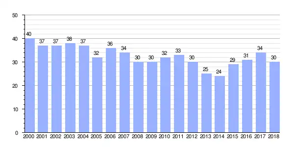 | Gráfica de evolución demográfica de Gafa entre 2000 y 2018 |