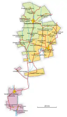 Gagaúzia se compone de una municipalidad (Comrat), dos ciudades (Ceadîr-Lunga y Vulcăneşti) y veintitrés pueblos con un total de treinta y dos localidades.[30]