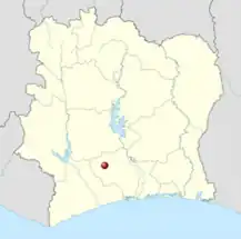 Se encuentra ubicado en el centro-sur del país, a poca distancia al sur de la presa de Kossou y al oeste del río Bandama.