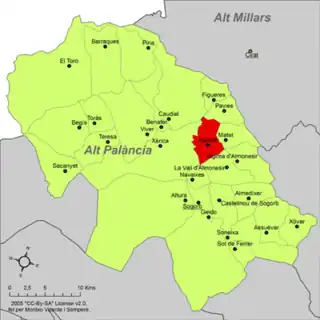 ![]() Localización en la comarca del Alto Palancia