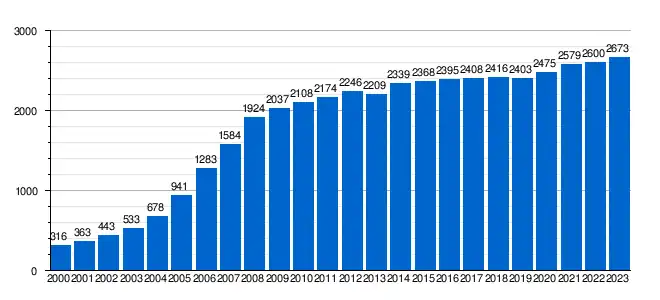 | Gráfica de evolución demográfica de Galápagos[5] entre 2000 y 2023 |