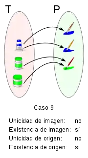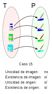 - Existencia de origen: para todo elemento del conjunto final existe algún elemento del conjunto inicial que es su origen.