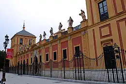 Galería de sevillanos ilustres, en la fachada lateral del palacio.