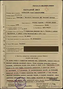 Galiy Adilbekovich Adilbekov (01.01.1908-21.10.1943) - oficial de tanques de carrera soviético, participante en Gran Guerra Patriótica, maestro de combate de tanques, Kazajo, Guardias Teniente coronel, otorgado: Medalla por la Defensa de Stalingrado (1943), dos veces Orden de la Bandera Roja (13.02.1942), el segundo - póstumamente (1943).
