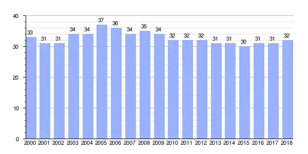 | Gráfica de evolución demográfica de Gallado entre 2000 y 2018 |