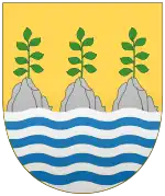 Armas: En campo de oro con tres rocas de su color fileteadas de sable sobre un ondado de azur y plata en forma de faja. Cada roca está coronada por una rama de ortiga de sinople de siete hojas.[2]