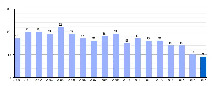 | Gráfica de evolución demográfica de Gallejones entre 2000 y 2017 |