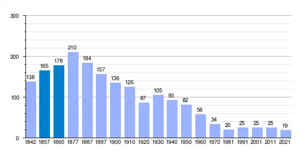 | Gráfica de evolución demográfica de Gallinero de Cameros[4] entre 1842 y 2021 |