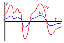 En electrónica, la ganancia, en lo referido a señales eléctricas, es una magnitud que expresa la relación entre la amplitud de una señal de salida respecto a la señal de entrada[1][2][3][4]. Por lo tanto, la ganancia es una magnitud adimensional, que se mide en unidades como belio (símbolo: B) o submúltiplos de este como el decibelio (símbolo: dB).