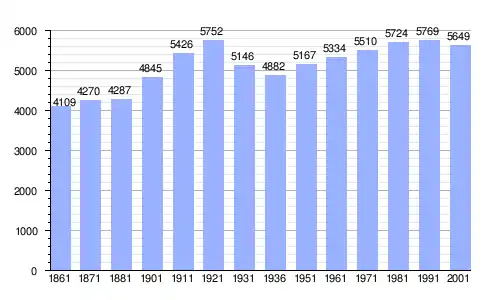 | Gráfica de evolución demográfica de Gandino entre 1861 y 2001 |