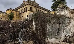 - Exterior del palacio (puerta principal y torre al fondo)