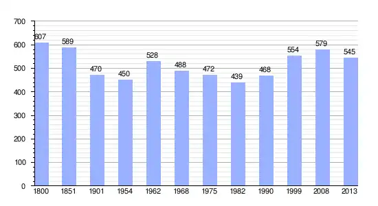 Los datos entre 1800 y 2013 son el resultado de sumar los parciales de las tres comunas que forman la nueva comuna de Garde-Colombe, cuyos datos se han cogido de 1800 a 1999, para las comunas de Eyguians,[4] Lagrand[5] y Saint-Genis[6] de la página francesa EHESS/Cassini. Los demás datos se han cogido de la página del INSEE.[7]