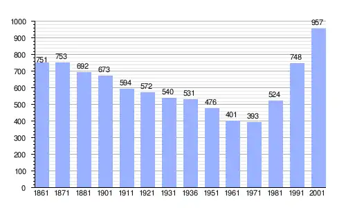 | Gráfica de evolución demográfica de Garlenda entre 1861 y 2001 |