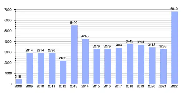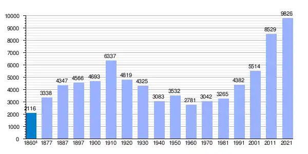 | Gráfica de evolución demográfica de Garrucha[14] entre 1860ª y 2021 |