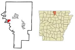 ![]() Localización en el condado de Baxter y en el estado de Arkansas | ||
