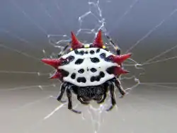 La araña panadera (Gasteracantha cancriformis), también conocida como araña soldado, araña tejedora espinosa o araña joya, es una especie de araña araneomorfa de la familia Araneidae endémica de América,[1][2] cuya tela presenta estabilimentos discontinuos en los bordes.
