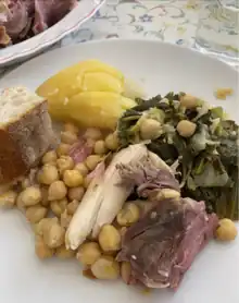 • Caldo gallego consistente en grelos con patatas, alubias y, opcionalmente, un cacho de chorizo y/o tocino.
