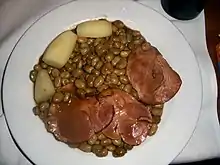 Este es uno de los platos nacionales más reconocidos del país. Es una preparación del cerdo ahumado junto a las habas, típicas del pueblo de Gostingen. El cerdo se cocina con zanahorias, apio, clavos y vino de Mosela. La salsa de habas lleva cebolla, caldo de carne y tocino. El plato se acompaña con patatas hervidas, cerveza o vino y se especia con pimienta o sal. Se dice que este plato debe su origen a las tropas españolas que llegaron al país en el siglo XVI o XVII.[1].