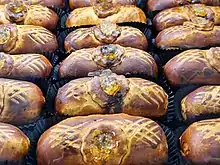 Esta comida es típica de ferias, fiestas y mercados del país, especialmente en invierno. Es un pastel de papa, huevos, harina y cebolla, y especiado con perejil picado. A veces se le añade ajo y nuez. Toda la masa se fríe y se sirve acompañada de salchicha ahumada.
