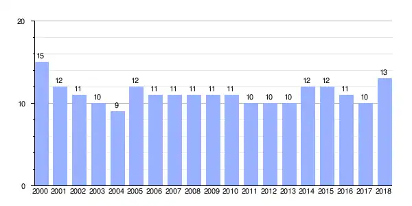| Gráfica de evolución demográfica de Gato entre 2000 y 2018 |