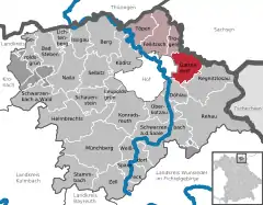 Se encuentra ubicado al norte del estado, en la región de Alta Franconia, a poca distancia de la frontera con los estado de Turingia y Sajonia.