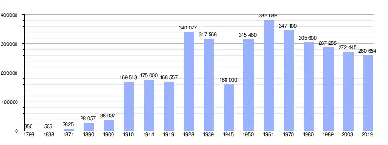 | Gráfica de evolución de Gelsenkirchen entre 1798 y 2019 |