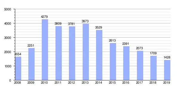 | Gráfica de evolución de Deuda viva del Ayuntamiento de Gelves entre 2008 y 2019 |