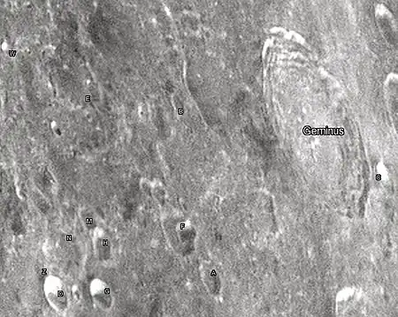 Por convención estos elementos son identificados en los mapas lunares poniendo la letra en el lado del punto medio del cráter que está más cerca de Geminus.