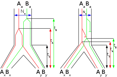- Rannala B, Yang Z (August 2003). «Bayes estimation of species divergence times and ancestral population sizes using DNA sequences from multiple loci». Genetics 164 (4): 1645-56. PMC 1462670. PMID 12930768.