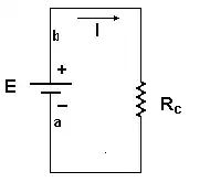 En la (figura 1) se ve el circuito más simple posible, constituido por un generador de tensión constante E conectado a una carga Rc y en donde se cumpliría la ecuación: