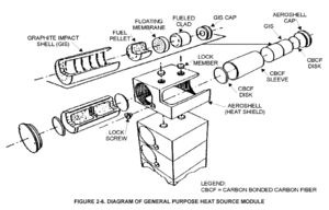 Para reducir al mínimo los riesgos de fuga radiactiva, el combustible nuclear se almacena en módulos con blindaje térmico individual. Estos se envuelven en una capa de iridio y se sellan dentro de bloques de grafito. Ambos materiales son resistentes a la corrosión y al calor. Alrededor del bloque de grafito se sitúa una protección contra el calor de la reentrada (aeroshell). El propio PuO2 se fabrica con una forma cerámica que minimiza los riesgos de rotura por calor y los riesgos de transformación en aerosol. Además, dicha forma cerámica es muy insoluble.