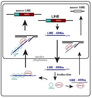 En el genoma humano se detectan más de 280 000 elementos reguladores, aproximadamente un total de 7Mb de secuencia, que se originaron por medio de inserciones de elementos móviles. Estas regiones reguladoras se conservan en elementos no exónicos (CNEEs), fueron nombrados como: SINE, LINE, LTR.[2] Se sabe que al menos entre un 11 % y un 20 % de estas secuencias reguladoras de genes, que están conservadas entre especies, fue formado por elementos móviles.