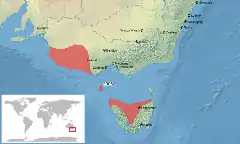Esta especie es endémica del sureste de Australia. Habita en el suroeste de Victoria, en el extremo sudeste de Australia Meridional, en King Island y en Tasmania.[5]
