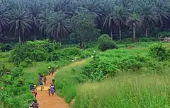 Los akan (unos 12 millones), que viven en el sur de Ghana, este de Costa de Marfil, Liberia y partes de Togo, se dividen en grandes grupos y subgrupos, entre los que destacan los abron, akyem, akuapim, anyi, asante, baoulé, denkyra, kwahu, nzema y fante.[34][35] De estos, los baulé son uno de los mayores grupos étnicos de Costa de Marfil, con 7,4 millones (según Joshua Project) miembros.[36] Son un grupo tradicionalmente dedicado a la agricultura que reside principalmente en la región oriental de Costa de Marfil, entre los ríos Komoé y Bandama, una zona de bosques y desierto, y en el centro, entre Bouaké y Yamusukro.