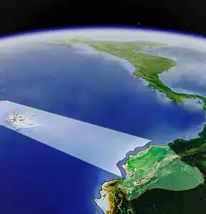 La plataforma submarina de Galápagos se encuentra constituida por la cordillera de Carneige y la cordillera de Cocos. Carneige se estiende hacia el Este hasta la fosa oceánica, dicha cordillera tiene una extensión de 1350 km de largo y 300 km de ancho, además de tener una altura de 3000 metros con respecto del piso oceánico circundante, por otra parte Cocos es una cordillera submarina que se extiende hacia el noreste hasta la fosa centroamericana, tiene una longitud de aproximadamente 1000 km y una anchura de 200 km, ambas cordillera se originaron en el punto caliente de Galápagos, es decir son parte de una misma anomalía de fusión en el hot spot variando su espezor de la corteza.[15] El Ecuador puede extenderse más allá de los 200 metros a través de la plataforma de Galápagos, para ello se debe presentar información técnica a la Comisión de Límites de la Plataforma Continental (CLPC), conforme a las Directrices Técnicas y Científicas de la Comisión de Límites de la Plataforma Continental (UNDOC CLCS-11).[15] Las elevaciones de Galápagos y la plataforma se originaron por la incidencia que tiene el punto caliente de Galápagos, las cuales originaron montañas submarinas que no forman parte del océano profundo.[15]