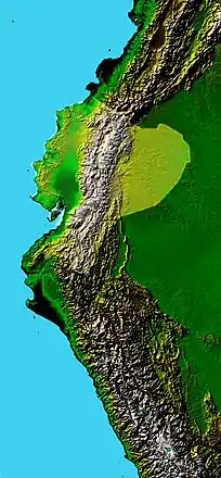 Se extiende desde la vertiente oriental de la Cordillera de los Andes. Se divide en alta Amazonía, entre alturas de 500 y 1 500 m y debajo de los 300 m hasta el Este, límite con Perú se extiende la llanura amazónica, constituido por colinas pequeñas de 50 m de altura aproximadamente.[7][8]