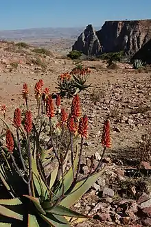 En los bosques húmedos crecen epífitas de los géneros Canarina, Scadoxus y orquídeas, así como helechos gigantes de los géneros Platycerium y Drynaria.[22] En las zonas secas crecen acacias, arbustos espinosos del tipo Commiphora, algunas de cuyas especies producen la mirra, especies suculentas de Euphorbia y aloe.[23]