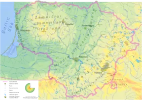 - Samogitia (Žemaitija, lit. 'tierras bajas'): región de Lituania occidental. Su capital es Telšiai, aunque la ciudad más poblada es Šiauliai.