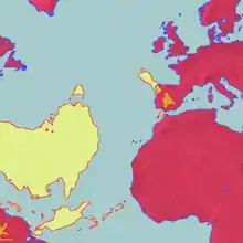 Nueva Zelanda es en gran medida antípoda de la península ibérica de Europa.[7] La mitad norte de la Isla del Sur corresponde a Galicia y al norte de Portugal.[7] La mayor parte de la Isla Norte corresponde al centro y sur de España, desde Valladolid (frente al punto sur de la Isla Norte, el Cabo Palliser), pasando por Madrid y Toledo hasta Córdoba (directamente antípoda de Hamilton), Lorca (frente al Cabo Este), Málaga (Cabo Colville) y Gibraltar. Partes de la Península de Northland se oponen a Marruecos, con Whangārei casi coincidiendo con Tánger. Las antípodas de las islas Chatham se encuentran en Francia, justo al norte de la ciudad de Montpellier.