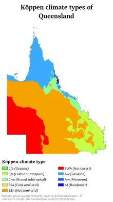 - «Climate of Queensland». Bureau of Meteorology. Archivado desde el original el 17 de marzo de 2009. Consultado el 13 de junio de 2010.