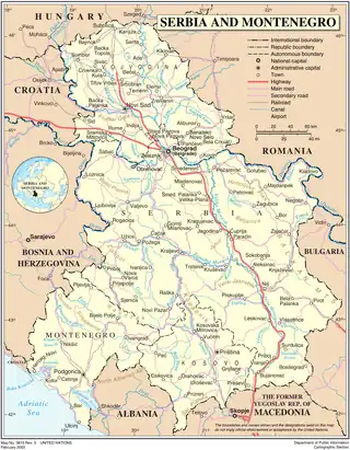 Serbia y Montenegro era un país federal que se encontraba al sureste de Europa. Limitaba al norte con Hungría, al noreste con Rumania, al noroeste con Croacia, al este con Bulgaria, al oeste con Bosnia y Herzegovina y al sur con República de Macedonia (hoy, Macedonia del Norte) y Albania.